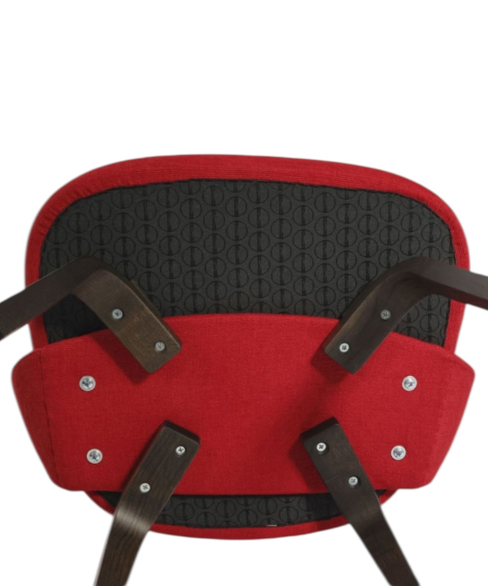 Élégante et intemporelle, la chaise “Conference” conçue par Eero Saarinen pour Knoll se distingue par ses lignes modernes et son confort enveloppant. Elle est ici proposée dans une version rare et sophistiquée : piètement en chêne massif teinté noir et revêtement en velours rouge profond “Bayberry” (Knoll, catégorie B).